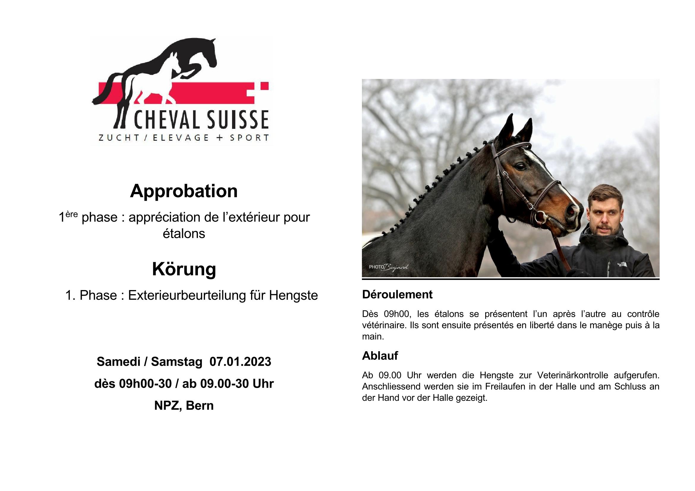 Nous pourrons bénéficier du savoir-faire et de l’expérience des experts français, Messieurs Yves Gay et François Fischesser, qui jugent les étalons présentés en main puis en liberté dans le manège. Tous les éleveurs ainsi que les personnes intéressées sont cordialement invités à assister à cette manifestation du 7 janvier 2023 ainsi qu’au traditionnel apéritif servi à la suite des appréciations.