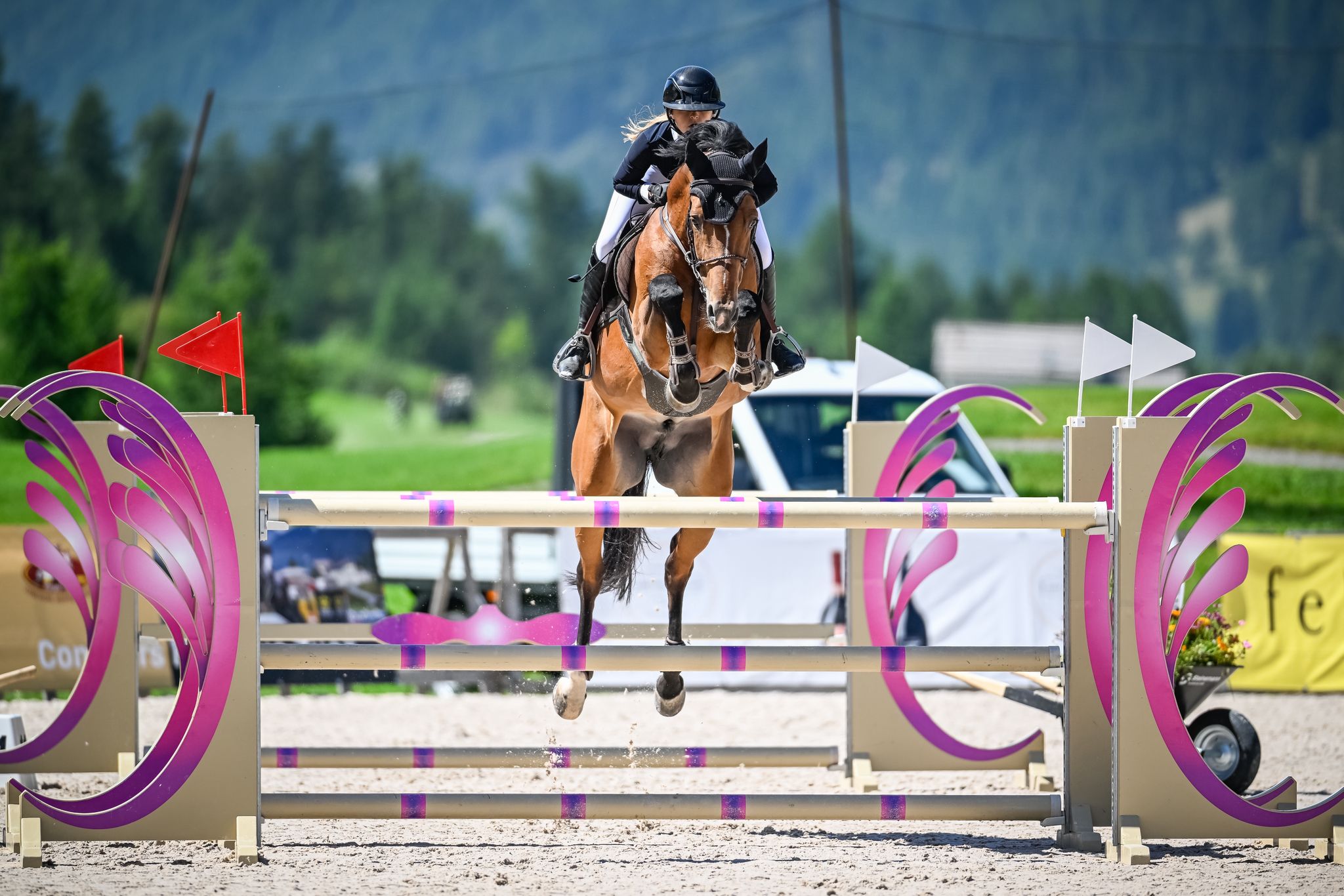 Karachijo, petit-fils du célèbre étalon Kannan, a démontré ses qualités de sauteur puisqu'il s'est qualifié pour la finale du Championnat Suisse des jeunes chevaux en 2024 et 2025 sous la selle de Hannah Vetterli.